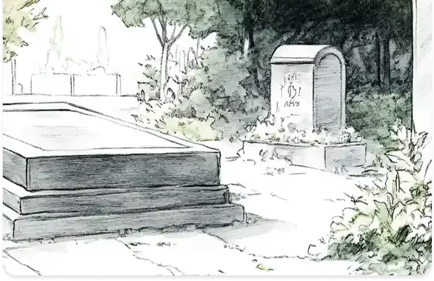 La pierre tombale : c’est la partie qui recouvre la sépulture, le plus souvent faite de marbre, granit ou pierre. On peut la personnaliser en y gravant des messages, des épitaphes, des informations sur le défunt… C’est devant la pierre tombale que les proches peuvent se recueillir ou déposer des fleurs.